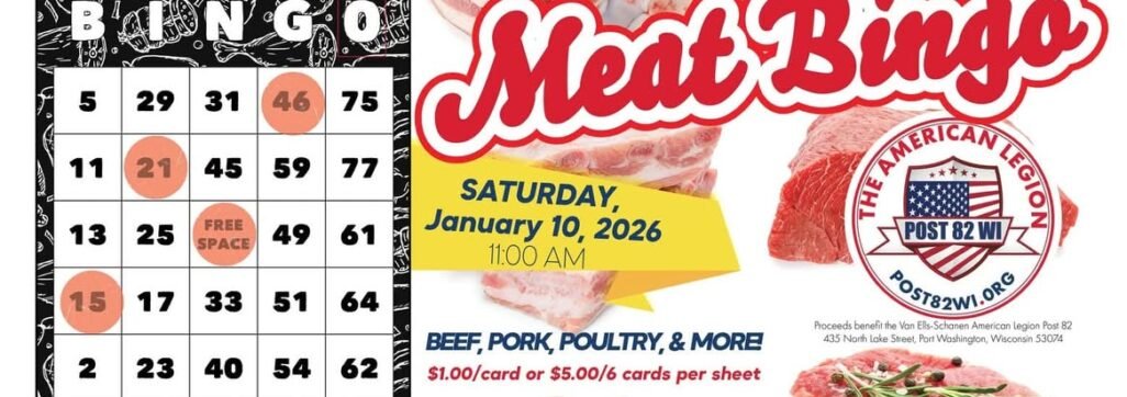 Join us Saturday, January 10, 2026 at 11:00 AM for a fun morning of bingo, prizes, and plenty of meat!