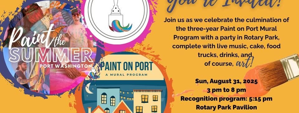 Celebrate the culmination of the Paint on Port Mural program and this year’s “Paint the Summer,” with a party on Sunday, August 31st in Rotary Park! Come enjoy live music, Cousins Maine Lobster Food Truck, celebratory cake and art as we wrap up this public art initiative.